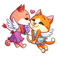Бесплатные стикеры Cupid Cat для мессенджера Телеграм. Установи стикеры в один клик в своем мессенджере.