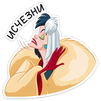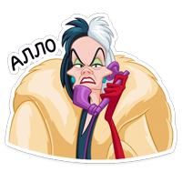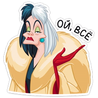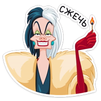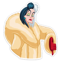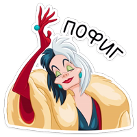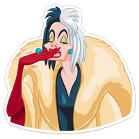 Бесплатные стикеры Круэлла де Виль для мессенджера Телеграм. Установи стикеры в один клик в своем мессенджере.